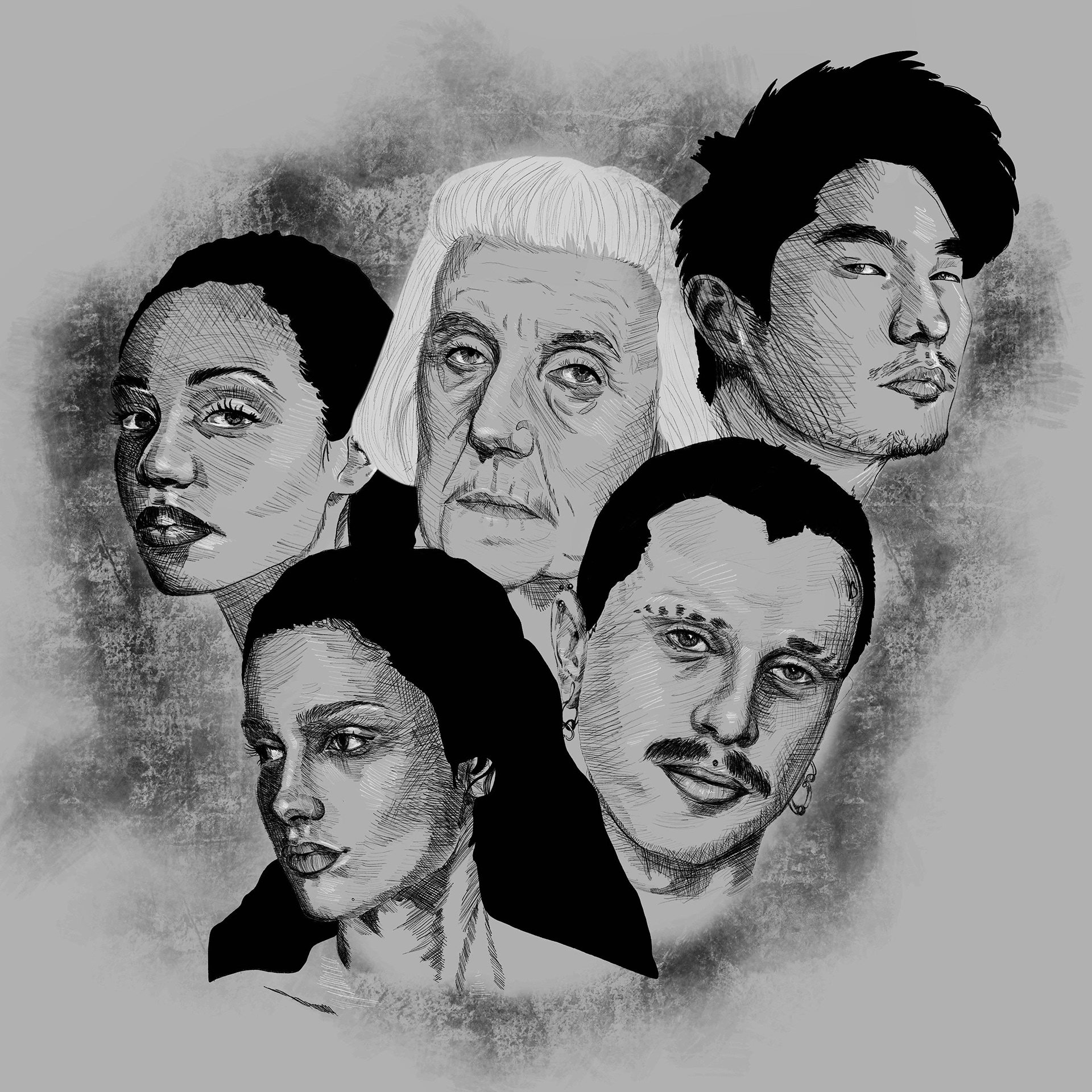 Developed for my illustration class, this is a 5-portrait study using cross-hatching to develop depth and establish accurate facial features.