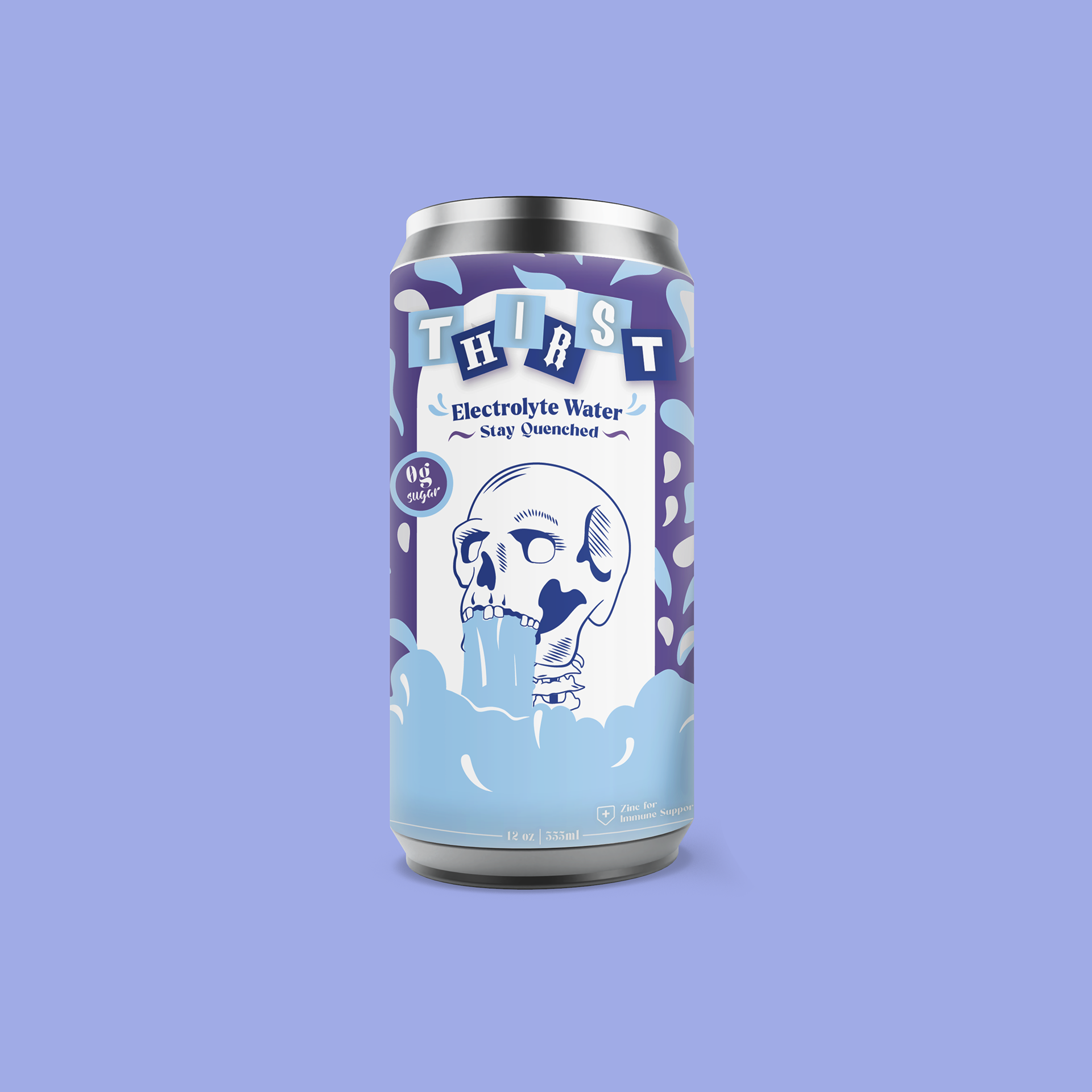 'Thirst' began as a silkscreen print (2nd image), which evolved into fictional branding for a canned water brand. Above you can see the can design, which mixes silkscreen and digital designs together.