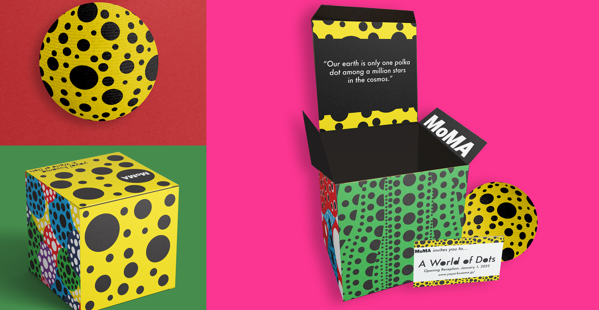 World of dots is a museum packaging concept celebrating the work of Yayoi Kusama. The exhibit branding, package and invitation are all custom-made to embrace the personal and interactive aspect of Yayoi's body of work.